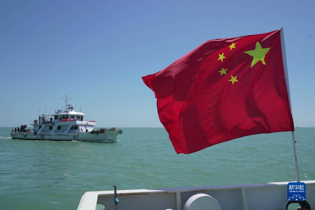 6月2日,参加增殖放流活动的船只在向秦皇岛市北戴河新区海洋渔业资源增殖放流基地海域航行。
