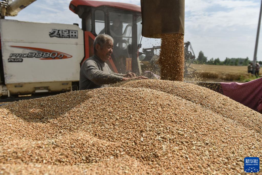 6月2日,村民在安徽省阜阳市临泉县吕寨镇杨庄村麦田里收获小麦。