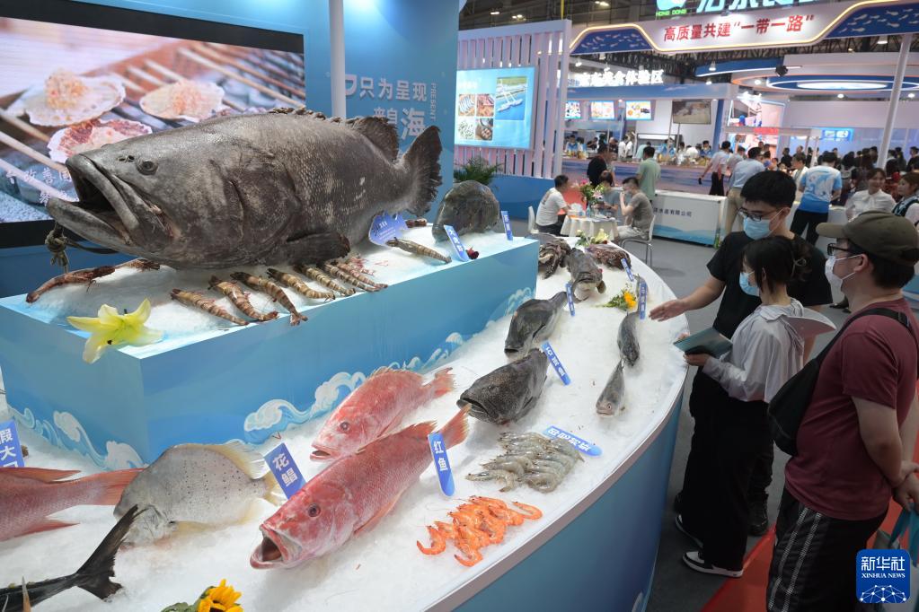 6月2日,中国(福州)国际渔业博览会现场展示各种海鲜产品。