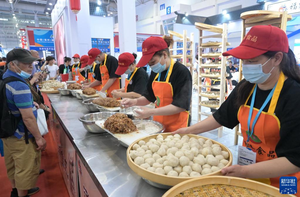 6月2日,工作人员在中国(福州)国际渔业博览会现场制作“福州鱼丸”。