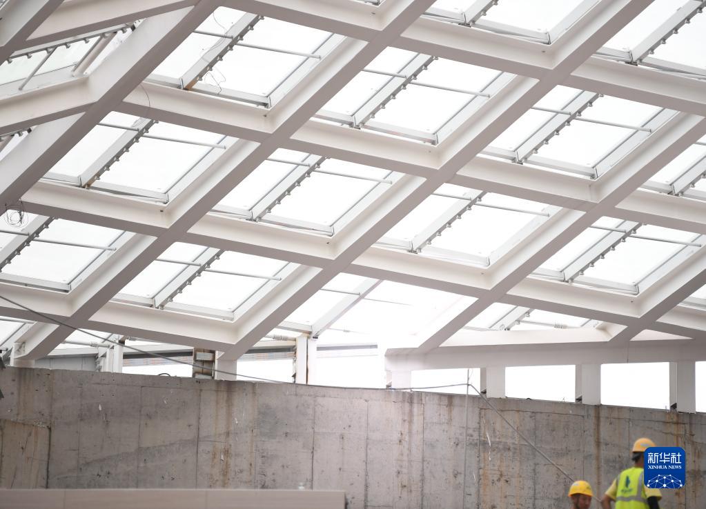 6月2日,工人在白鹅潭大湾区艺术中心进行内部装修。