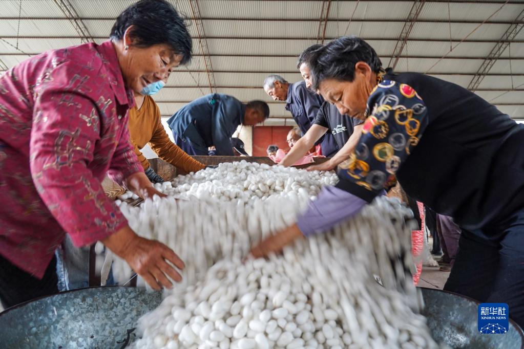 正值蚕茧收获时节,山东省泰安市岱岳区祝阳镇春季蚕茧喜获丰收,蚕农抢抓农时摘茧、售茧。