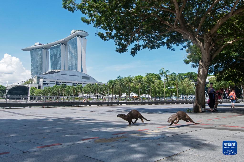 5月2日,一群水獭在新加坡滨海湾一带的闹市中出没。