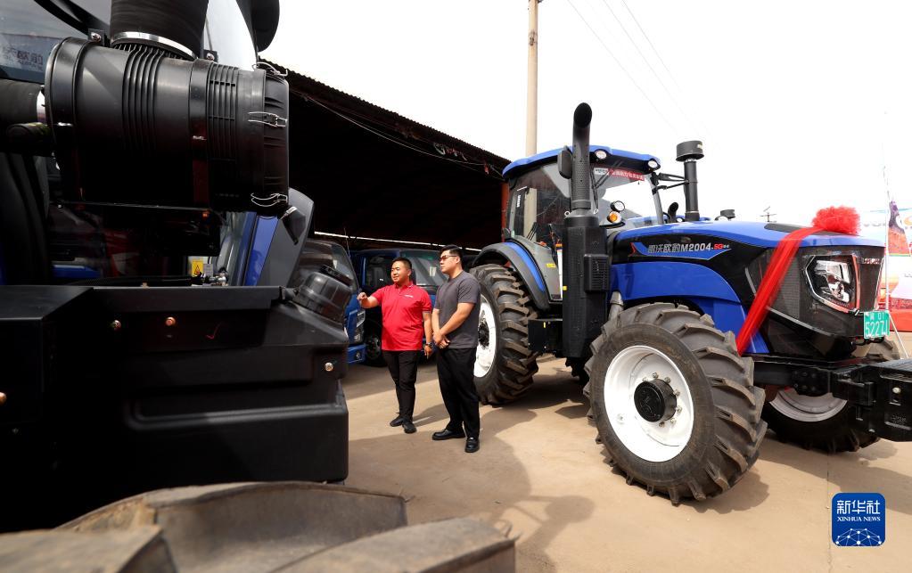 6月2日,在河北省晋州市一家农机销售公司,顾客选购农用拖拉机。