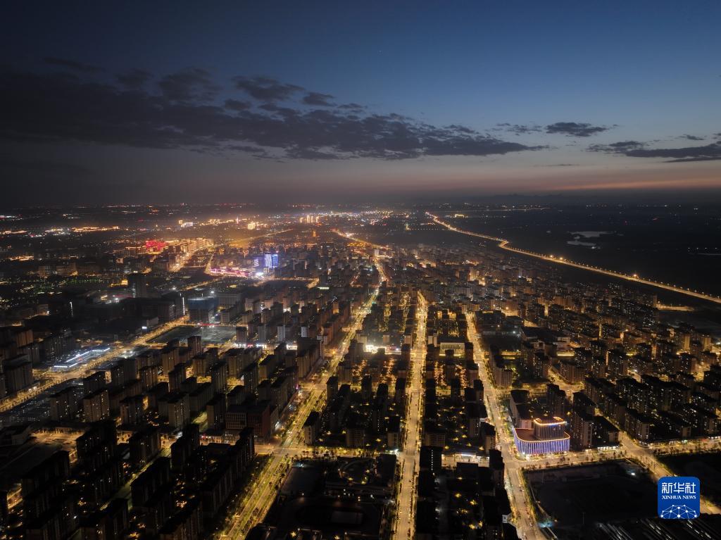 这是雄安新区容东片区夜景(5月31日摄,无人机照片)。容东片区是雄安新区首个集中建成区。