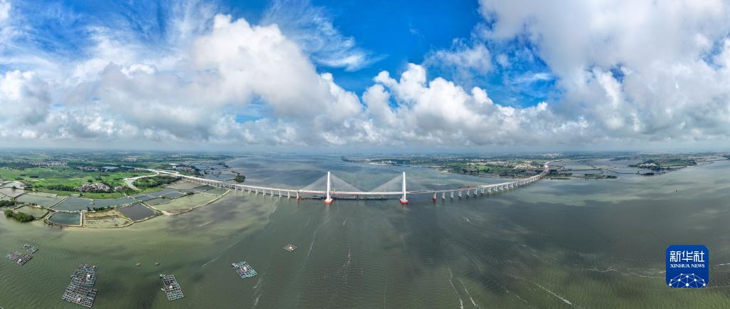 5月25日拍摄的建设中的鹭洲大桥(无人机全景照片)。