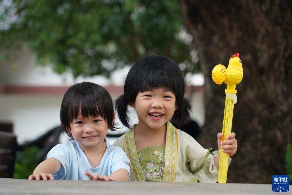 6月3日,小朋友在江西省萍乡市芦溪县芦溪镇东阳村里玩耍。