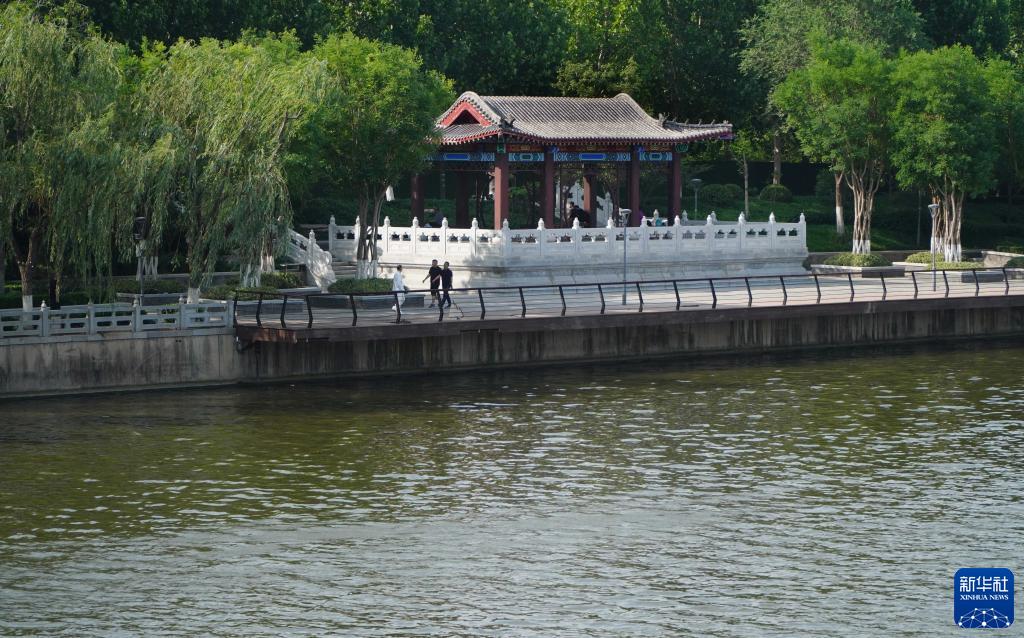 6月4日,市民在小清河济南段岸边休闲健身。