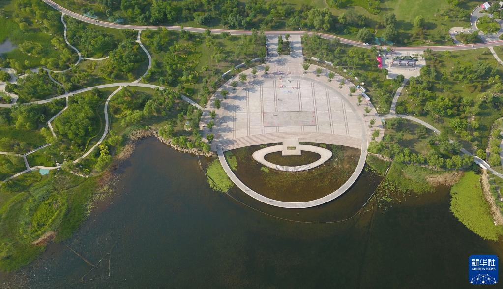6月4日在山东省济南市拍摄的华山湿地公园(无人机照片)。