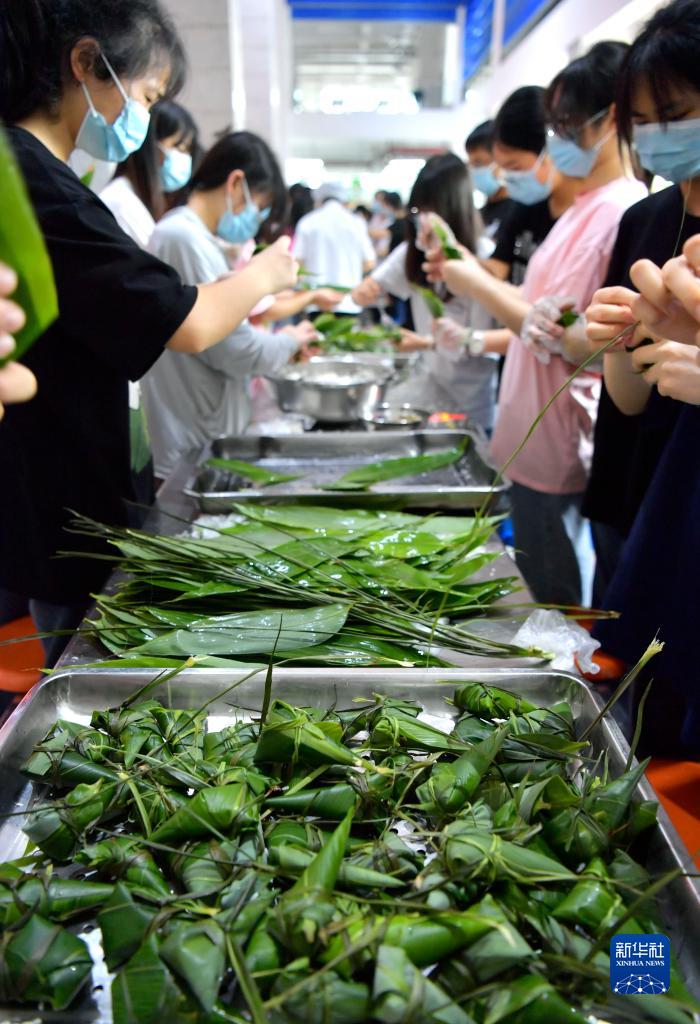 当日,湖北省恩施土家族苗族自治州宣恩县第一高级中学组织高三学生参加传统手工包粽子比赛,让即将踏入考场的学生在亲自动手体验传统文化的过程中舒缓心情、释放压力,以轻松的心态迎接高考。
