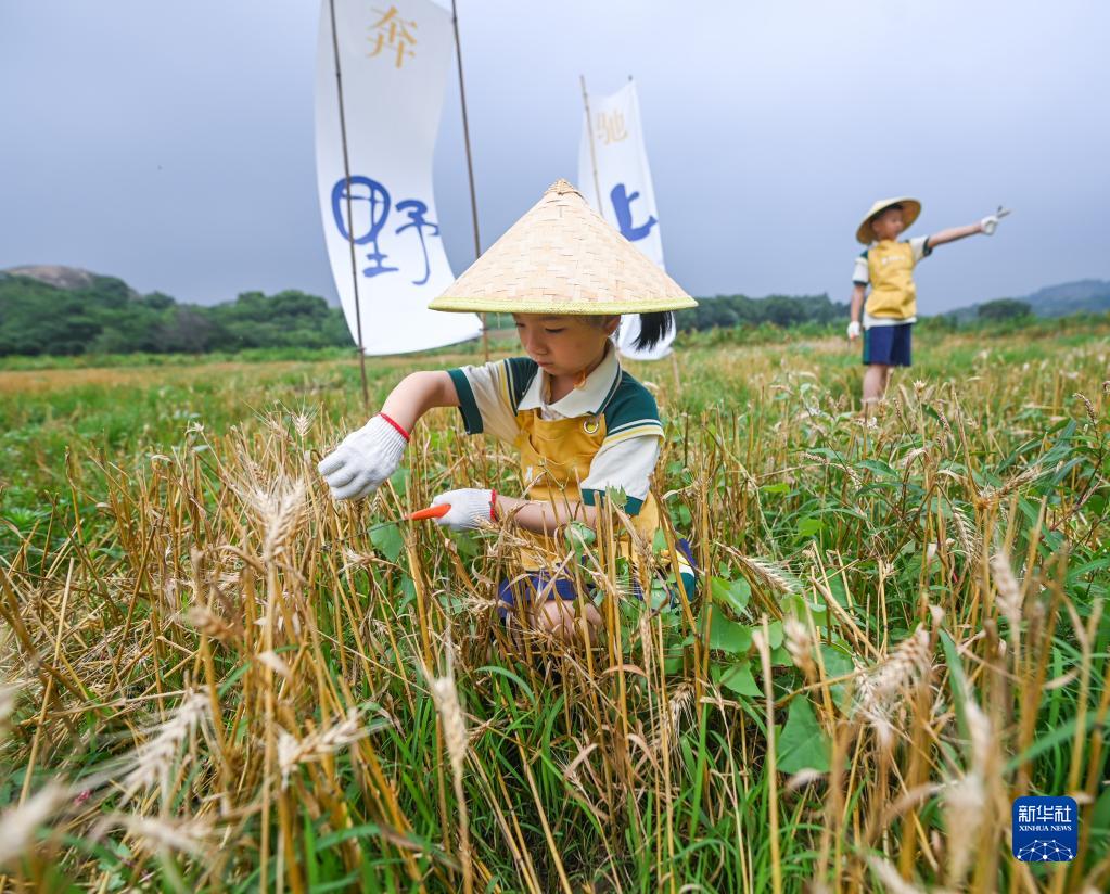 6月5日,芒种节气来临前,浙江省湖州市仁北幼儿园的孩子们在家长和老师的带领下来到道场乡格林农庄开展校园精细化特色课程——芒种田野实践活动。孩子们在田野里收获小麦和插秧,感受收获与耕种的忙碌,这也属于“阅读、运动、劳动”精细化特色课程的重要组成部分。