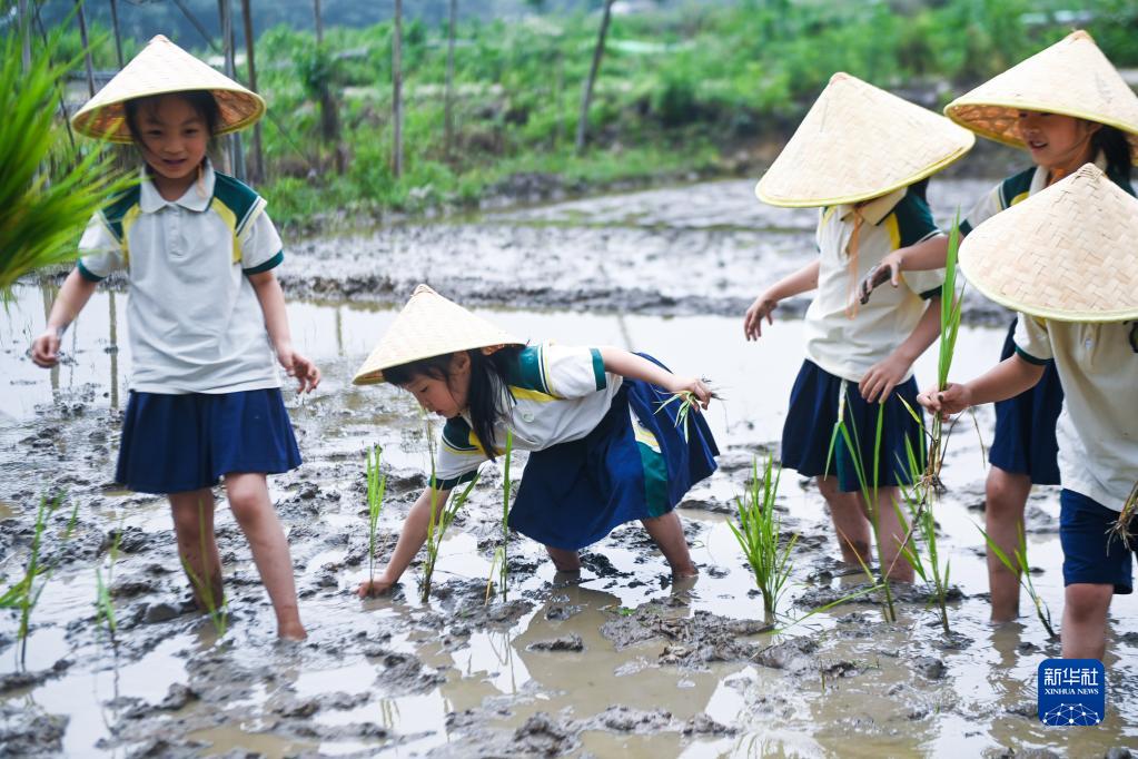 6月5日,芒种节气来临前,浙江省湖州市仁北幼儿园的孩子们在家长和老师的带领下来到道场乡格林农庄开展校园精细化特色课程——芒种田野实践活动。孩子们在田野里收获小麦和插秧,感受收获与耕种的忙碌,这也属于“阅读、运动、劳动”精细化特色课程的重要组成部分。