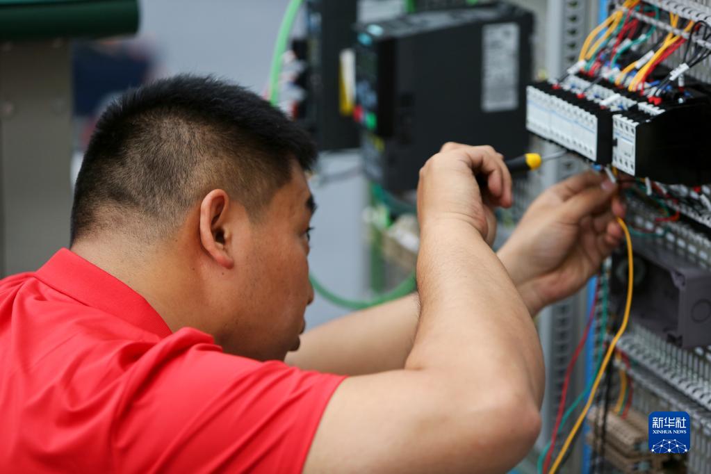 6月5日,选手在参加电工比赛。