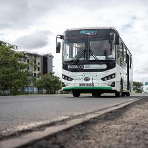 6月3日,一辆电动巴士行驶在肯尼亚内罗毕街头。