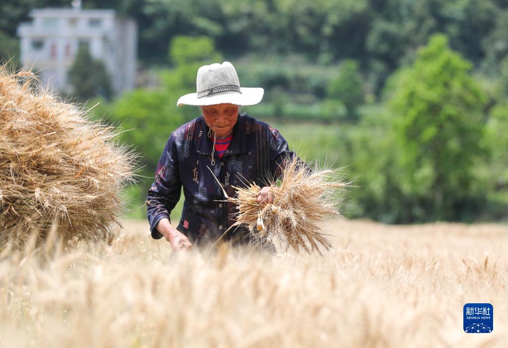 5月31日,村民在贵州省贵阳市开阳县宅吉乡堰塘村的高标准农田里收割小麦。