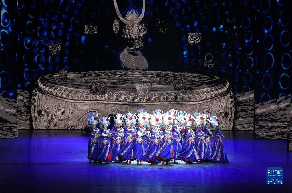 6月5日,演员在贵阳大剧院的《多彩贵州风》演出中表演节目《金绣银饰》。