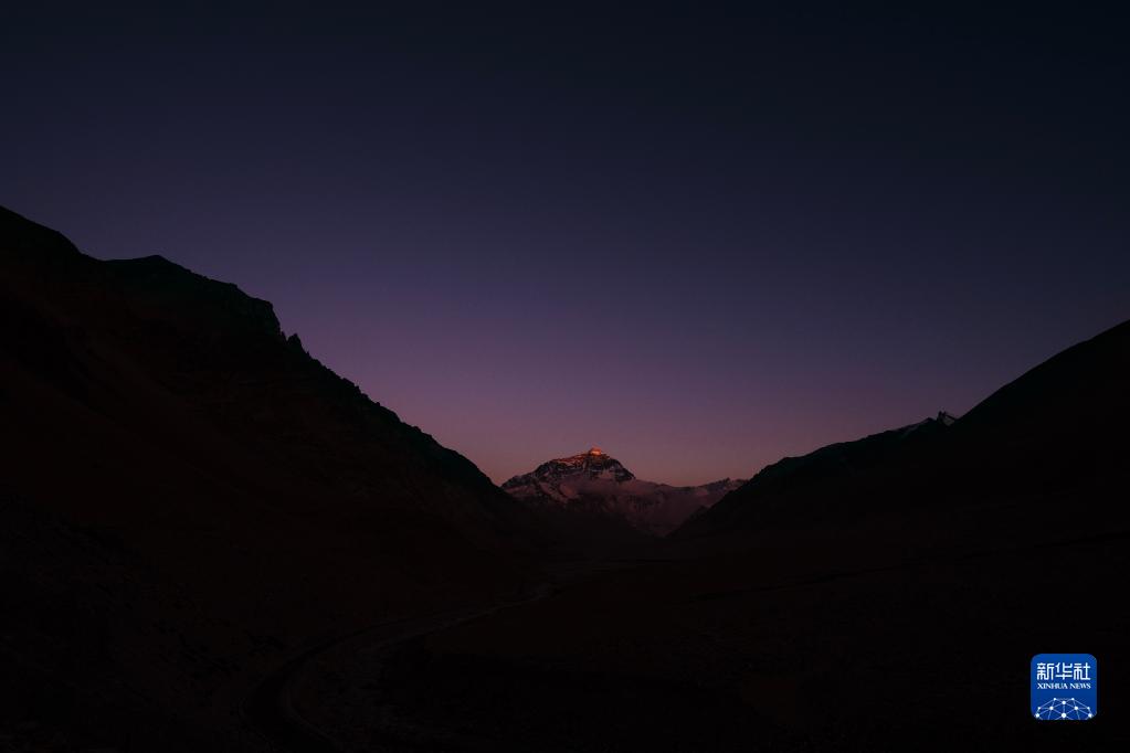 巍峨的珠穆朗玛峰屹立于青藏高原,珠峰地区气候复杂,景色瞬息万变。“国道之行 从雪山奔向大海”报道组在落日时分来到珠穆朗玛峰脚下,记录下世界之巅的“日照金山”壮美场景。