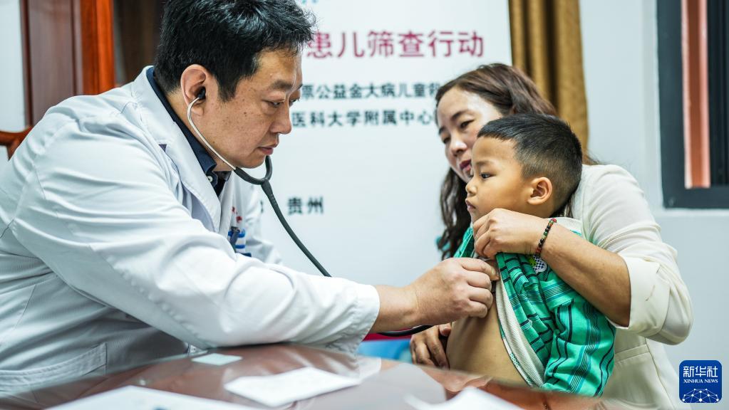 6月6日,在关岭布依族苗族自治县中医医院,山东第一医科大学附属中心医院的医疗专家为小朋友做检查。