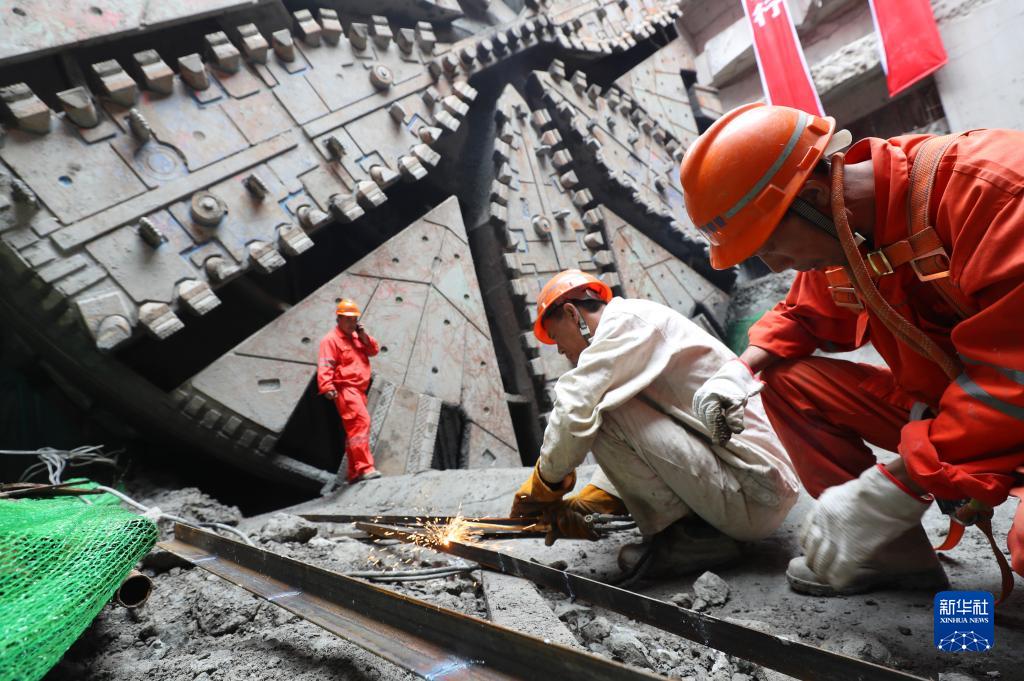 6月6日,施工人员在北横通道新建工程Ⅷ标段安国路井内进行“纵横号”盾构接收准备工作。