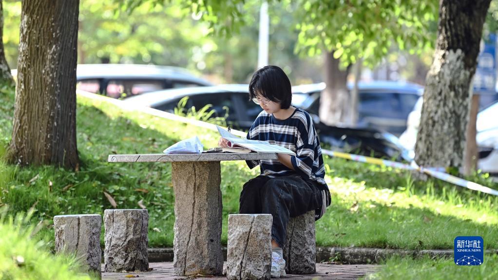 6月6日,在广西钦州市第二中学校园内,一名考生在备考。