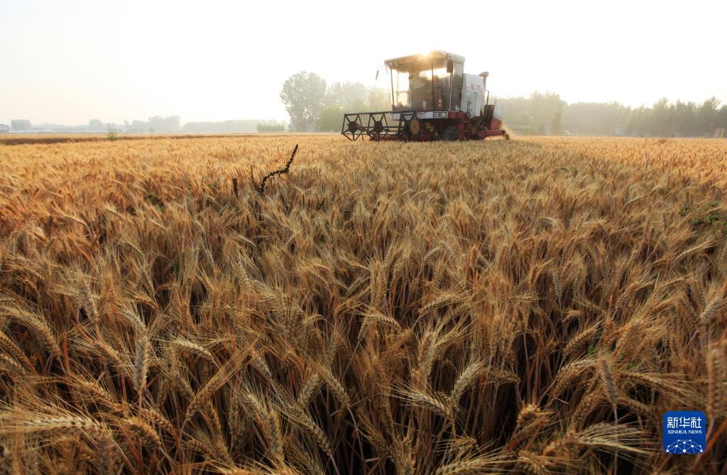 6月6日,在山东省临沂市平邑县地方镇大广良村,农机手驾驶收割机在收割小麦。