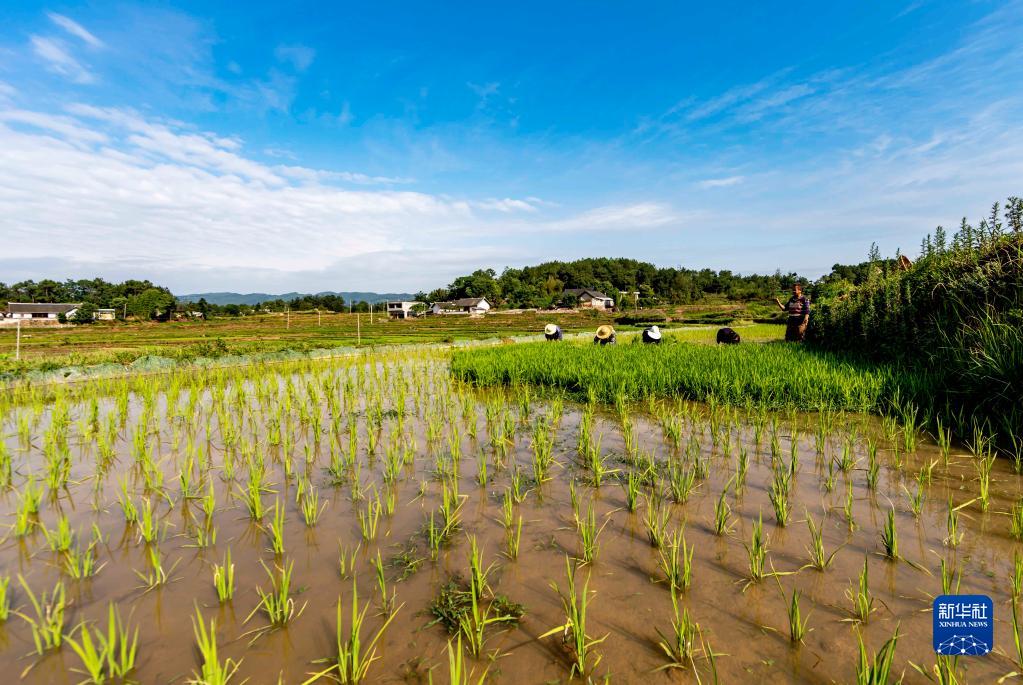 6月6日,村民在贵州省黔西市锦星镇洪湖村农田劳作。