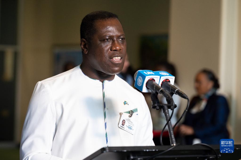 6月6日,在位于纽约的联合国总部,塞拉利昂外交与国际合作部长弗朗西斯在塞拉利昂当选联合国安理会非常任理事国后在记者见面会上讲话。