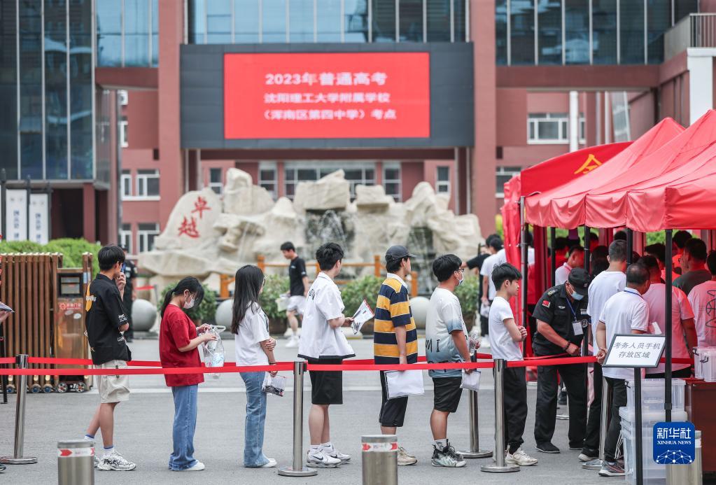 6月7日,考生在沈阳理工大学附属学校(浑南区第四中学)考点门前排队入场。