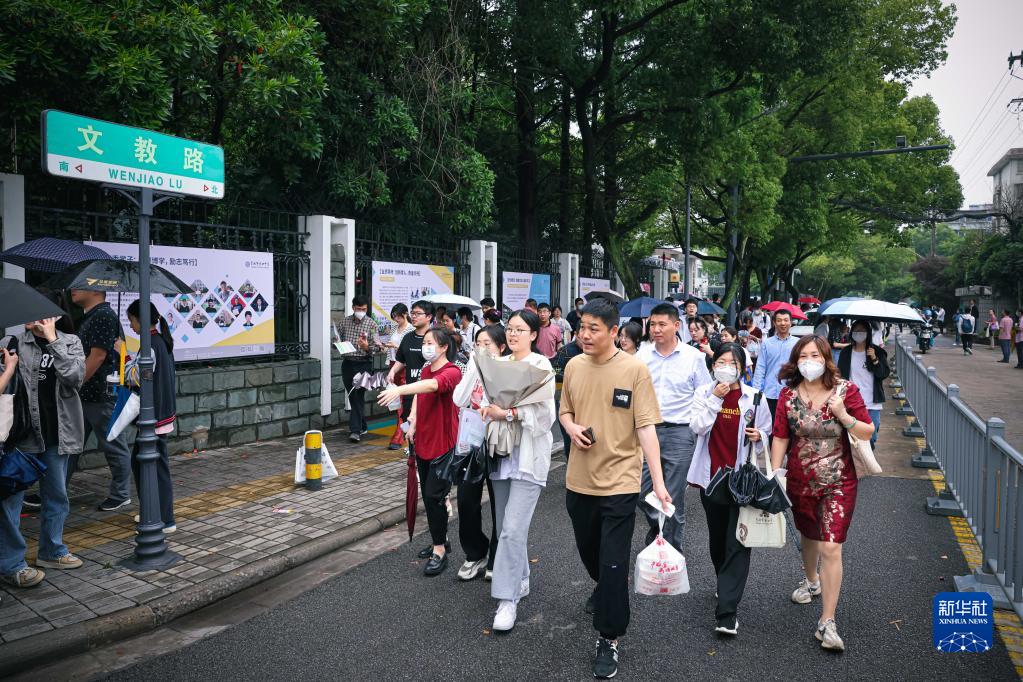 6月7日,考生与家长在结束第一场考试后离开宁波四中考场。