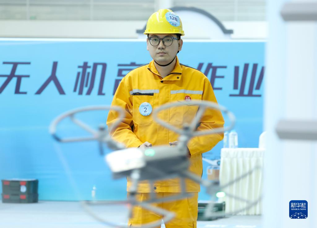 6月7日,参赛选手在无人机操作员项目的比赛中。