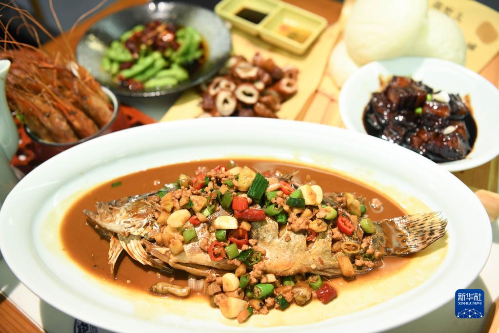 这是6月3日在浙江省杭州市一家杭帮菜馆里拍摄的臭鳜鱼及杭州本地菜品。