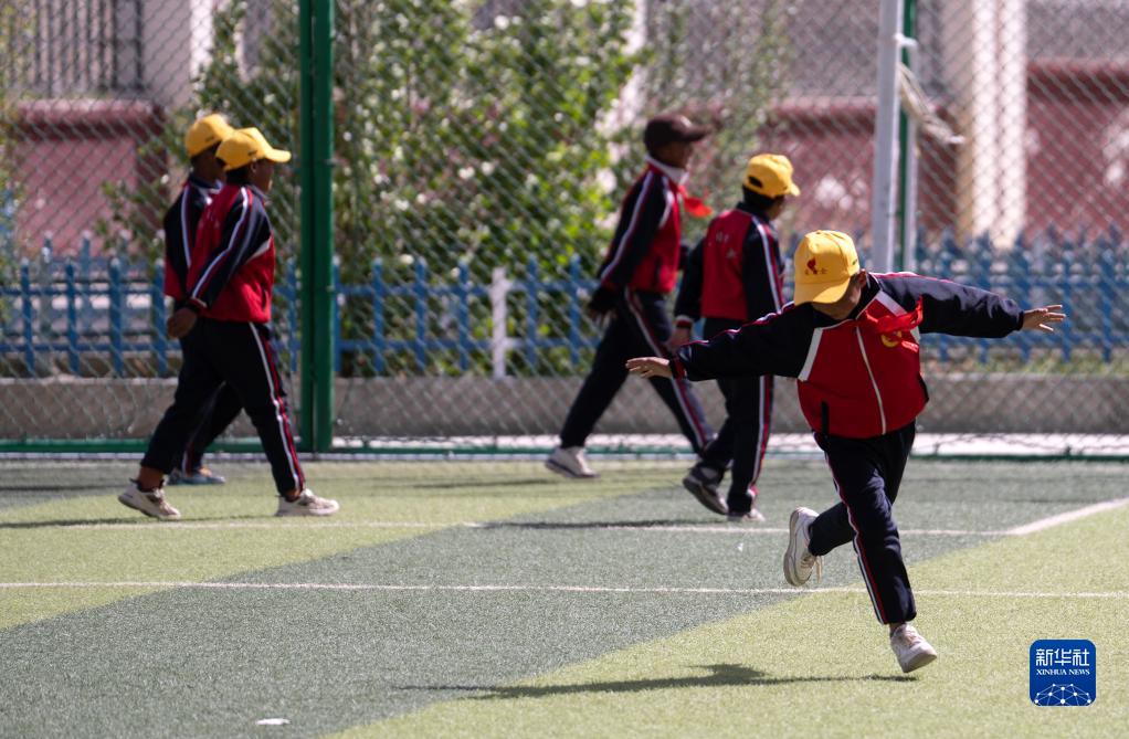 6月5日,扎西宗乡完全小学的学生在上体育课。新华社记者 费茂华 摄