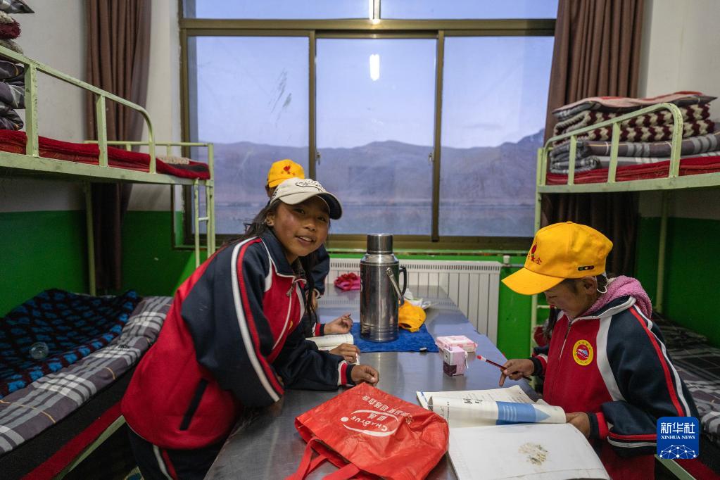 6月5日,扎西宗乡完全小学的学生在宿舍学习。新华社记者 费茂华 摄