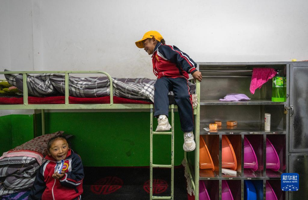 6月5日,扎西宗乡完全小学的学生在宿舍准备就寝。新华社记者 费茂华 摄
