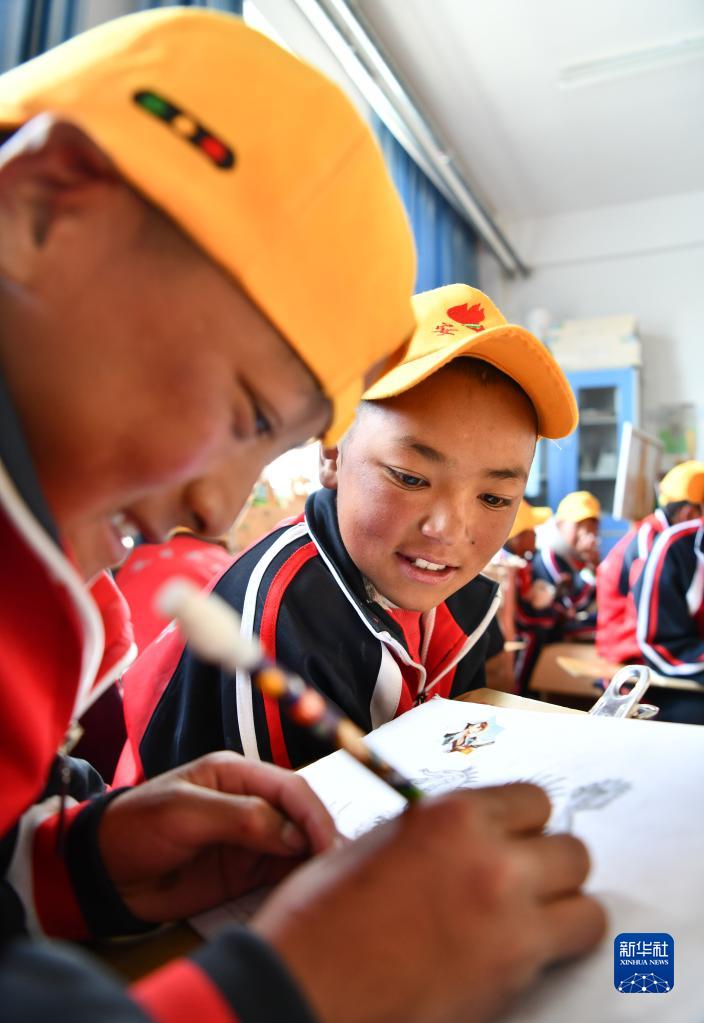 扎西宗乡完全小学的学生在上美术课(6月5日摄)。新华社记者 晋美多吉 摄