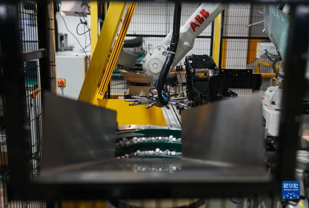 6月7日,在江苏常熟汽饰集团生产车间,机械手臂在安装卡扣。