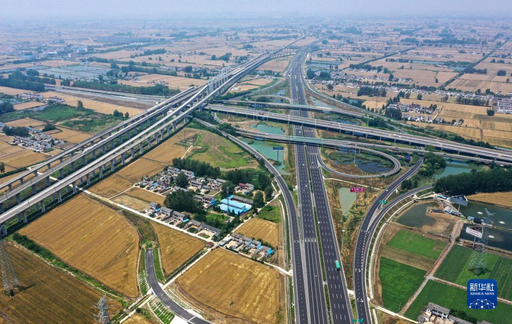 京沪高速公路扩建工程楚州枢纽段现场(6月6日摄,无人机照片)。