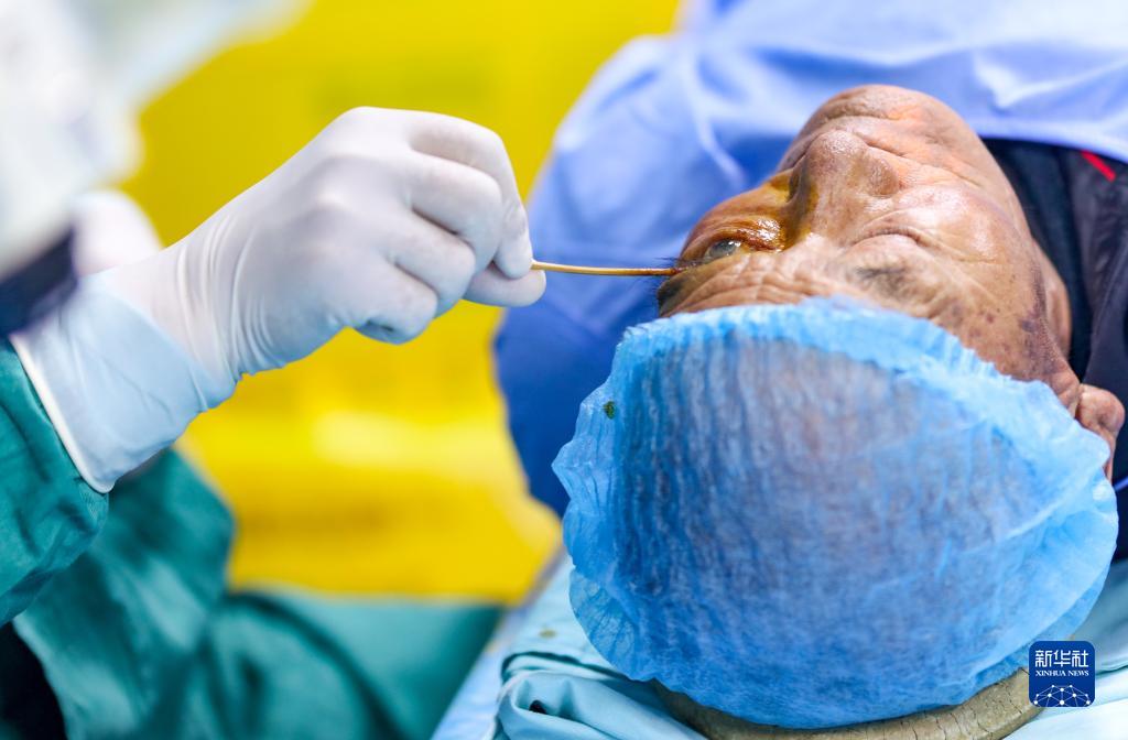 6月8日,光明眼科康复诊疗院的医生在为一位农牧民白内障患者做术前准备。