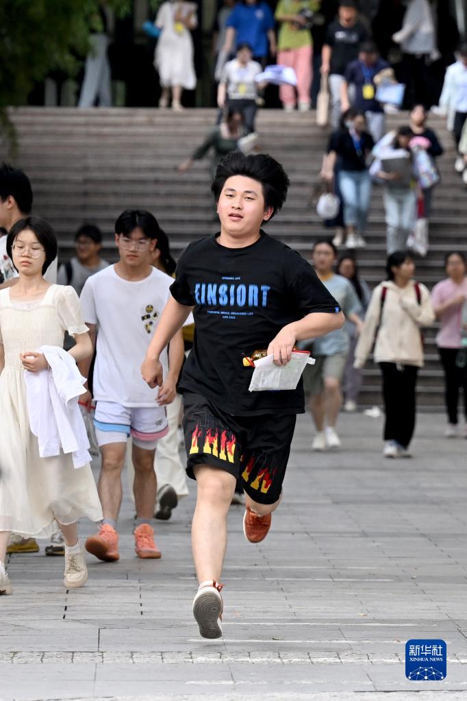 6月8日,一名考生从合肥市五十中学天鹅湖教育集团天鹅湖校区考点跑出。