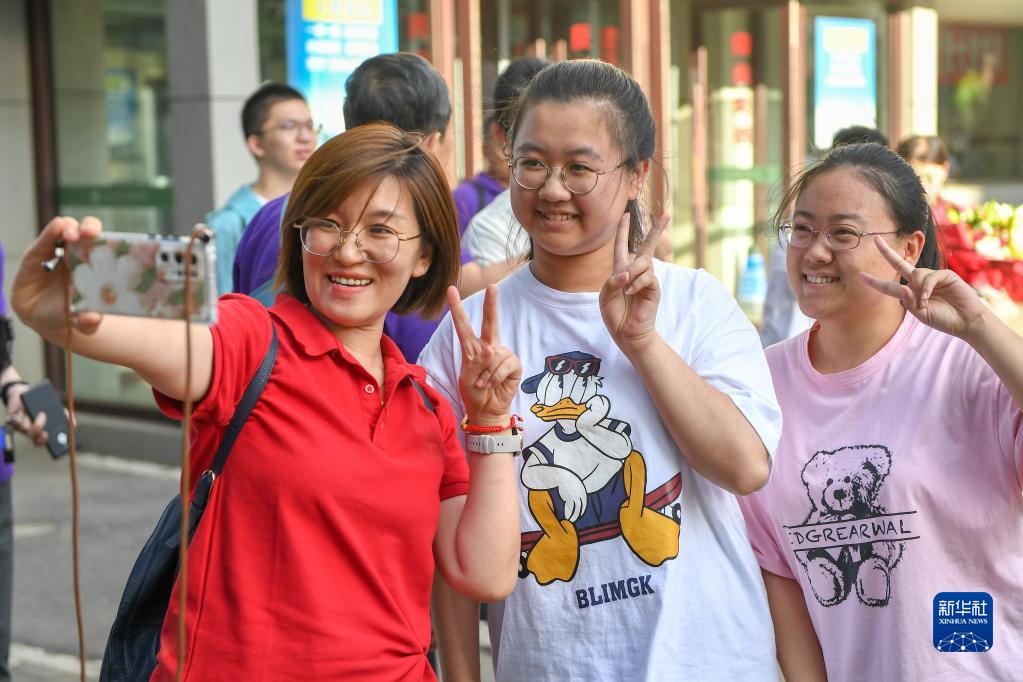 6月8日,在位于长春市的东北师大附中考点,考生与教师合影留念。