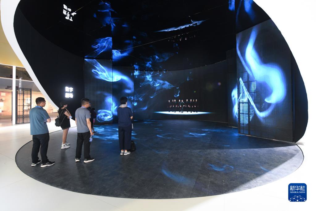 6月8日,观众在文博会数字中国主题展区数字剧场观影。