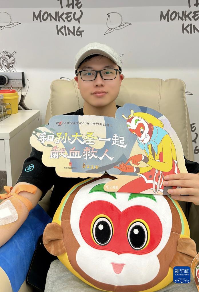 为迎接6月14日“世界献血者日”,加强无偿献血宣传,6月8日,由上海市血液中心与上海美术电影制片厂联合打造的“热血悟空”主题献血屋在上海市黄浦区人民公园门口正式启用,经典国产动画《大闹天宫》的元素让献血者置身“童话世界”,变身“热血英雄”。
