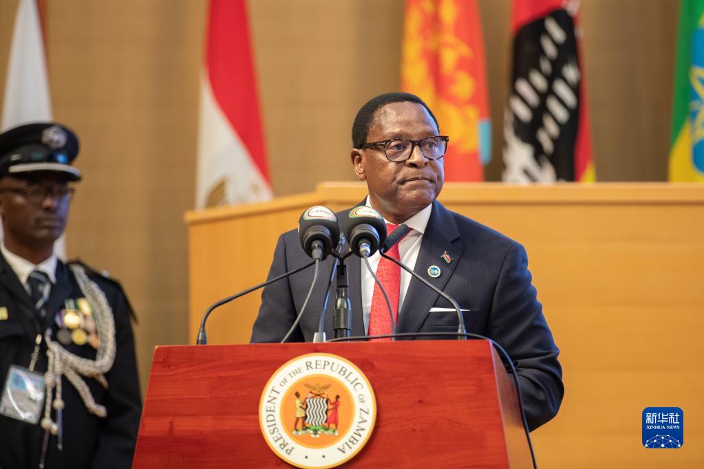 6月8日,在赞比亚首都卢萨卡,马拉维总统查克维拉在第22届东南非共同市场成员国领导人峰会上致辞。