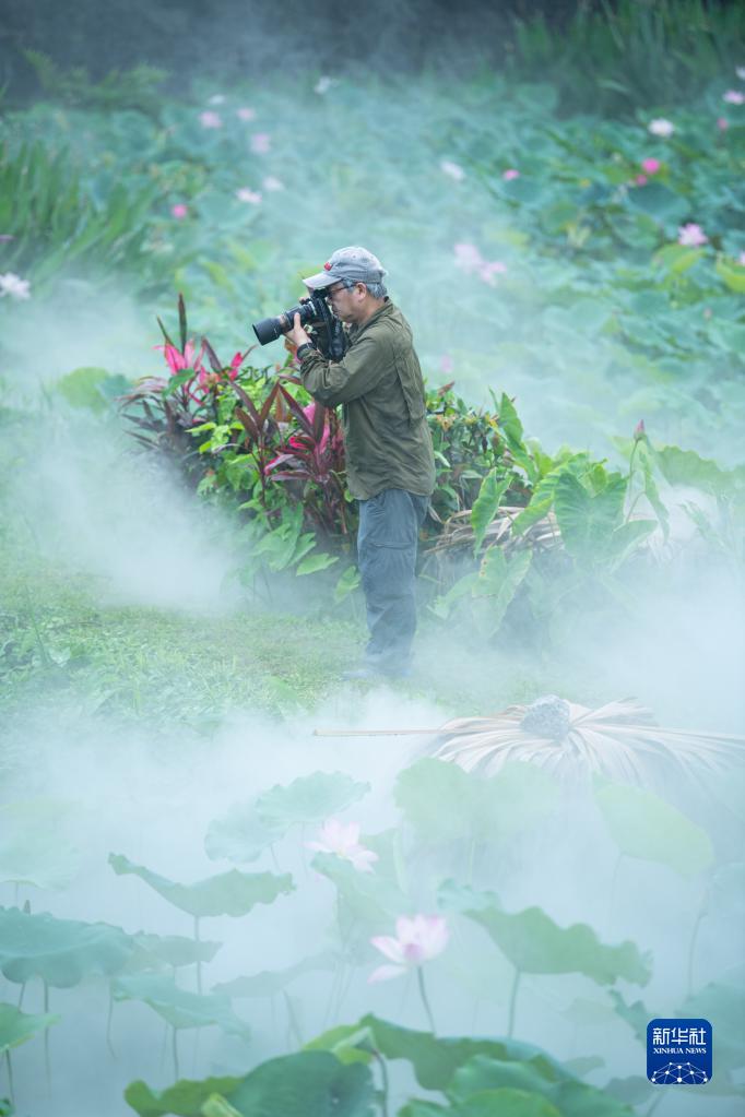 6月9日,游人在澳门龙环葡韵拍摄荷花。