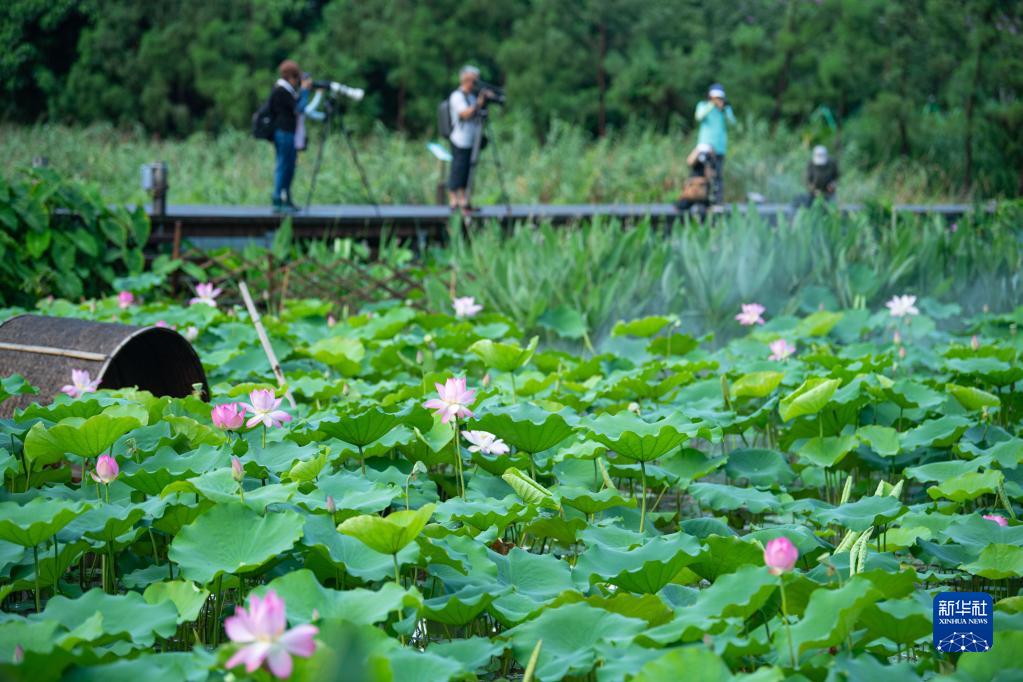 6月9日,人们在澳门龙环葡韵拍摄荷花。