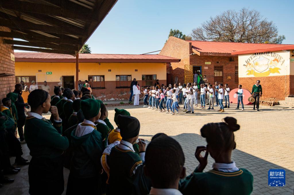 6月8日,在南非豪滕省,莫策戈法迪瓦小学的学生在校园内活动。