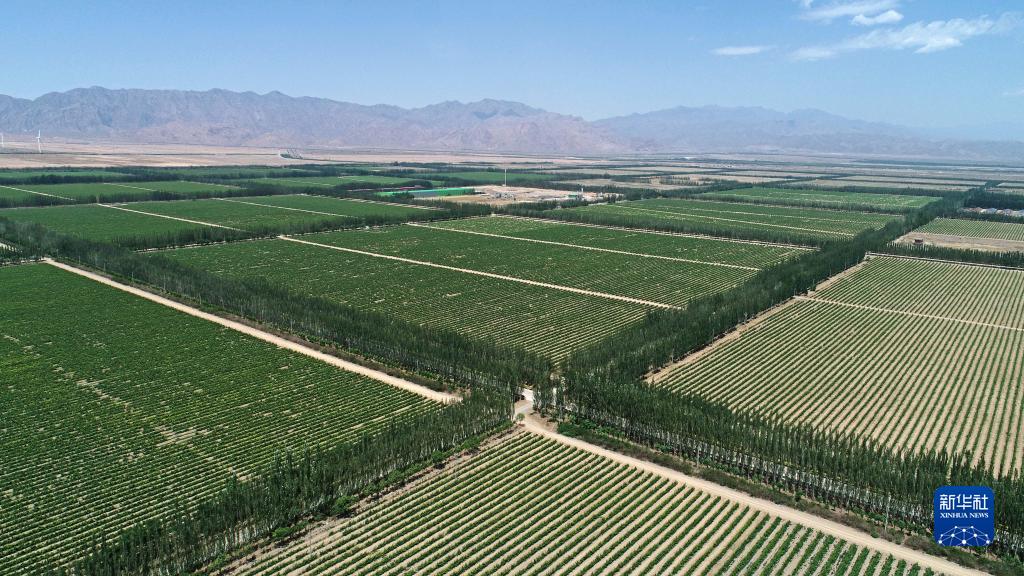 这是位于宁夏贺兰山东麓的贺兰神酒庄酿酒葡萄种植基地(6月8日摄,无人机照片)。