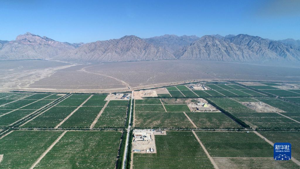 这是位于贺兰山脚下的部分酒庄和酿酒葡萄种植基地(6月8日摄,无人机照片)。