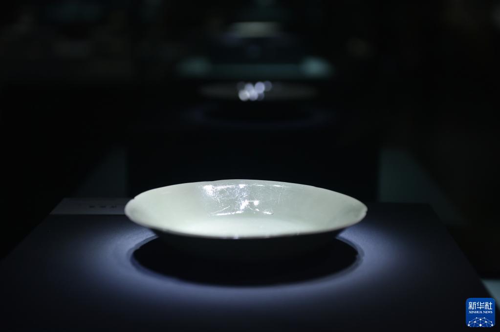 这是6月10日在郑州大象陶瓷博物馆拍摄的展品青瓷盘。