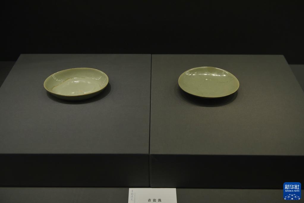 这是6月10日在郑州大象陶瓷博物馆拍摄的展品青瓷洗。